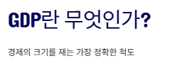 | 국가 GDP | 나라 전체의 생산 합계 | 국가별 경제 규모 비교 |