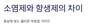 따라서 소염제와 항생제의 차이를 이해했다면, 항생제만큼은 의사가 처방해 준 일수를 반드시 지켜 끝까지 복용하는 습관을 지녀야 합니다.