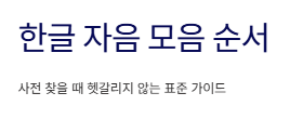 글자를 조합할 때(받침 포함) 사전에서 단어를 찾는 순서는 다음과 같은 체계를 따릅니다.