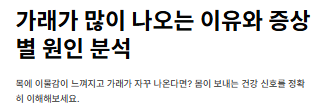 - 증상이 2주 이상 이어진다면 가까운 이비인후과나 내과를 방문하여 정확한 원인을 파악하시길 권장합니다.
