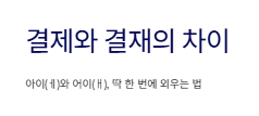 | 구분 | 결제 (아이/ㅔ) | 결재 (어이/ㅐ) |