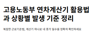 - 고용노동부 연차계산기를 통해 법정 최소 기준을 먼저 파악하세요.