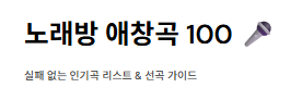 정리하자면, 노래방 애창곡 100 리스트는 트렌드에 따라 변하지만 '응급실'이나 '가시' 같은 클래식은 여전히 강력한 힘을 발휘합니다.
