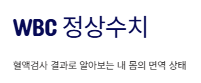 일반적으로 성인의 wbc 정상수치는 혈액 $1\mu L$당 4,000~10,000개 사이로 봅니다. 하지만 이 수치는 검사 기관, 연령, 성별, 그리고 당시의 신체 상태에 따라 약간의 차이가 발생할 수 있습니다.
